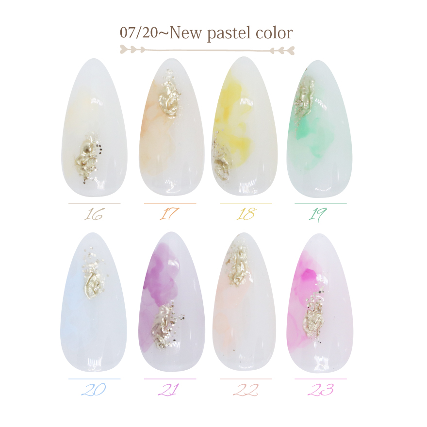 ☆パステルカラー16~23は、白顔料が多く1色使いでも白とカラーを使ったようなモヤモヤ感が可愛いです